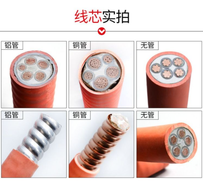 图片说明:刚性矿物绝缘电缆与柔性矿物绝缘电缆在结构上的核心区别。