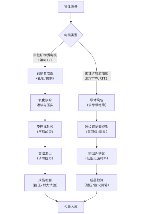不同类型的防火电缆工艺流程有显著差异,下图清晰地展示了两种主流技术的生产路径:
